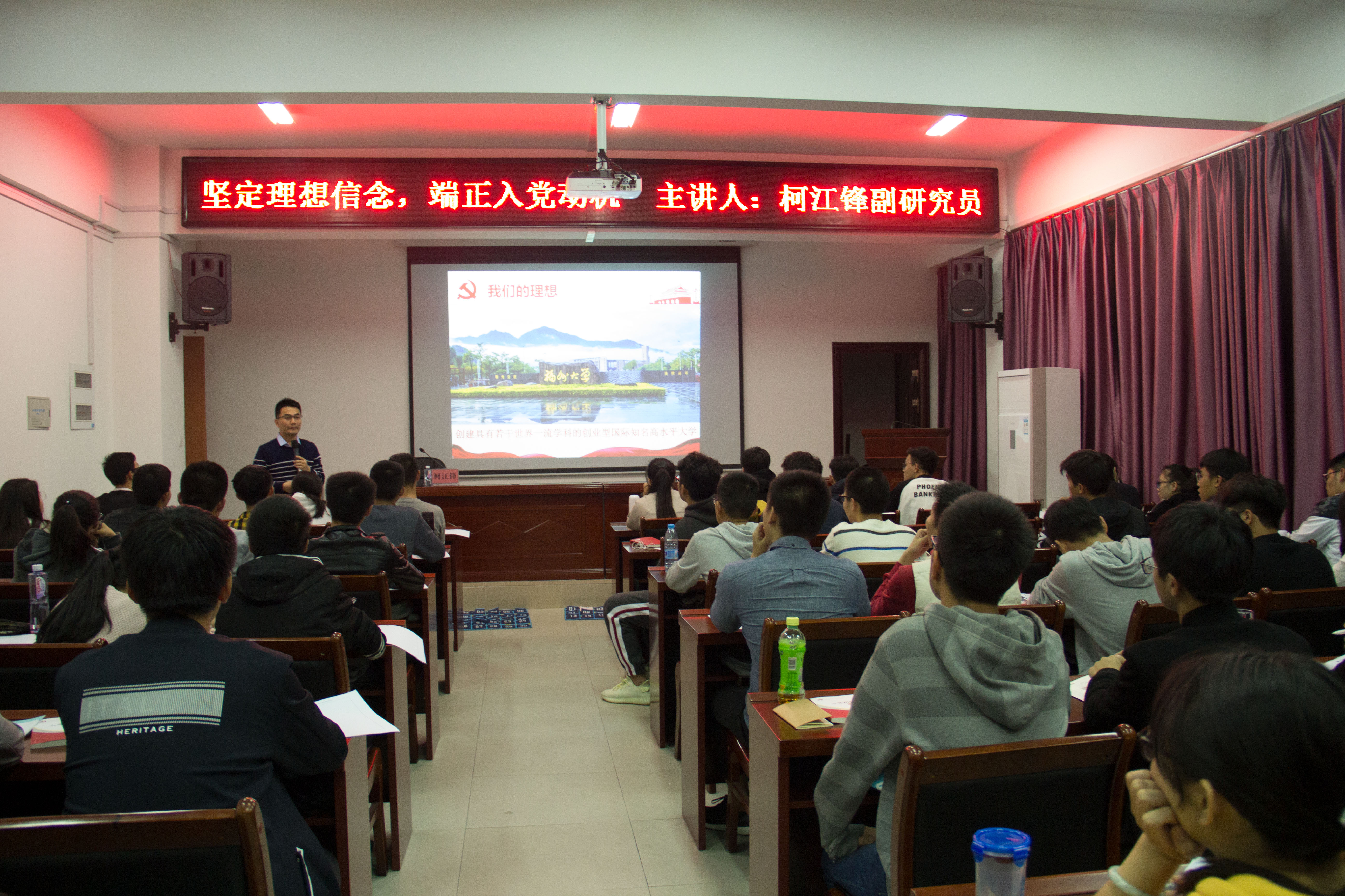 11月21日晚6:20,成人论坛 第十二期分党校培训班在学院304隆重举行。此次培训以“坚定理想信念,端正入党动机”为主题,校党委组织部柯江锋副研究员担任主讲,院党委副书记郑寿、院团委书记李金土出席了本次培训。