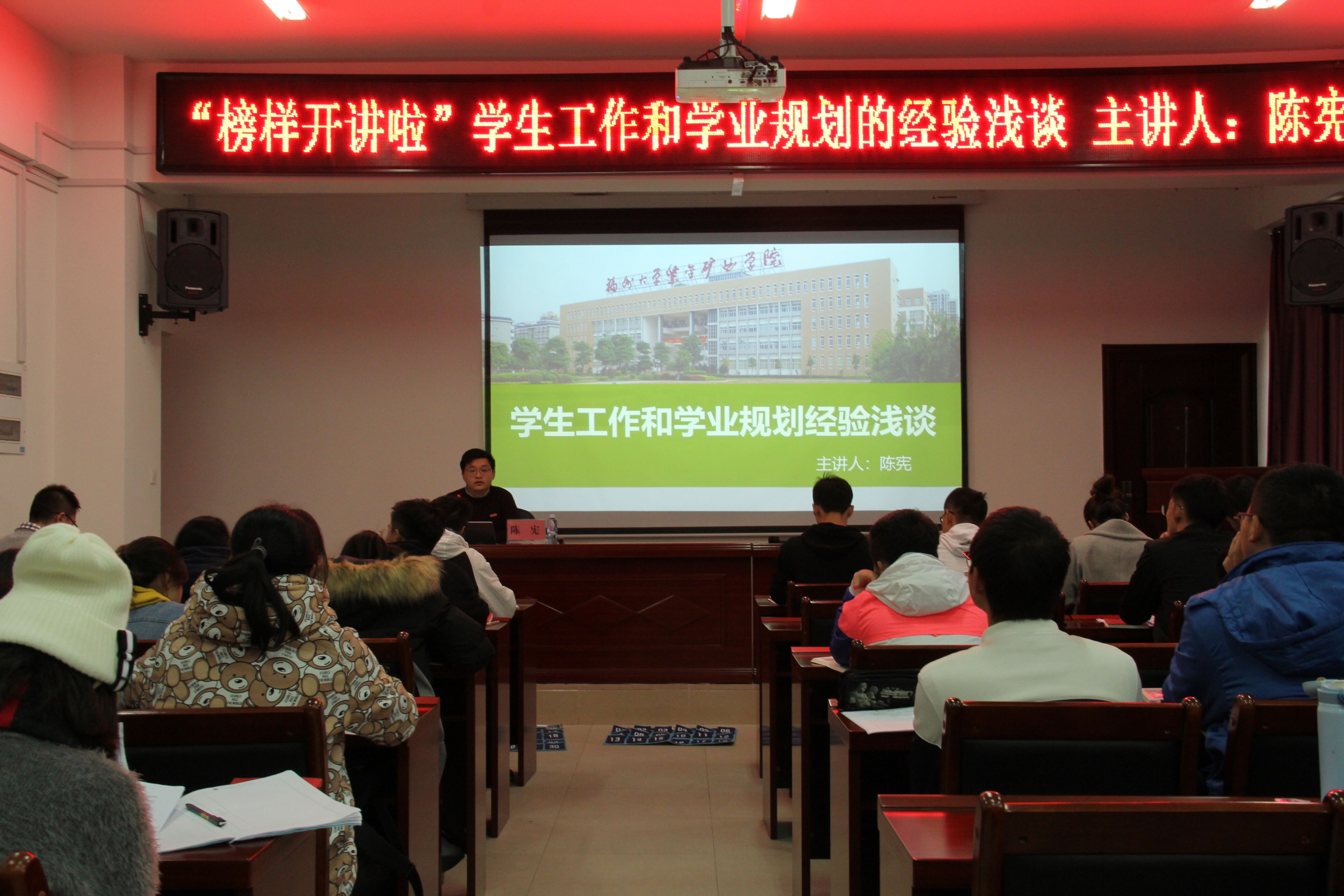 随后,成人论坛 2018级研究生、优秀党员陈宪与在座学生做交流,题为学生工作和学业规划的经验浅谈暨成人论坛 紫金矿业学院纪念改革开放四十周年学习交流会。他用自己的亲身经历与大家做深入交流,引导大家及早规划大学生活,并从每一件小事做起,踏踏实实过好大学生活。