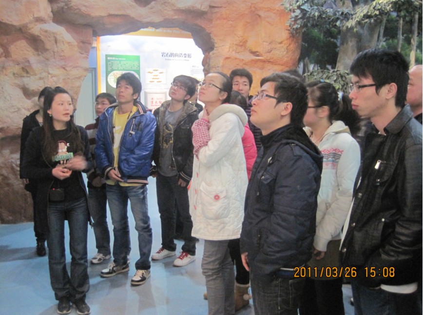 3月25日下午,上杭教学基地2008级采矿专业工程专业师生,在继2008级资源勘查专业同学后,参观了上杭教学基地的紫金地质矿产博物馆。紫金地质博物馆分为四层,其中包括三层展馆,分别是:序厅、展厅(4个)及3D影视厅。其中四个展厅的主题分别是:揭开地球的面纱、地球的物质世界、丰富的地下宝藏和飞速发展的紫金。在讲解员的带领下,大家穿越过各种声光电技术、模拟仿真技术营造的场景中。面对那些生动形象的地质学现象和各种珍贵的实物标本,大家在感慨大自然神奇的同时,更为人类开发自然资源的聪明才智而骄傲。