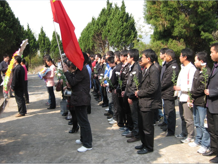 2011年4月2日成人论坛 2008级学生党支部全体学生党员、发展对象、入党积极分子到上杭县烈士陵园举行了清明节祭奠烈士活动。参加祭扫活动的还有团县委党员代表、上杭教学基地在住教师。上午7:50,参加祭奠烈士活动的师生在基地门口集合,8:00准时出发,步行到达烈士陵园。首先,韩雪同志负责主持扫墓仪式,大家排着整齐的队伍来到烈士的墓碑前,全体人员肃立,向革命先烈们默哀。接着,陈璐同志为我们宣读烈士们的英勇事迹,并带领全体人员集体宣誓。随后,大家将自制的小白花献在了烈士纪念碑前,来缅怀革命先烈。最后,大家一起参观革命烈士纪念碑,每个人的心情都很沉重,感到我们如今的生活来之不易,使得我们更加懂得珍惜生活,热爱祖国。本次活动培养了同学们的爱国情怀,使大家在继承先烈革命传统,发扬前辈爱国精神的同时,更加珍惜现在的幸福生活。我们要心系祖国,把国家命运放在第一位,努力学习科学文化知识,立志为中华民族的伟大复兴而奋勇拼搏。