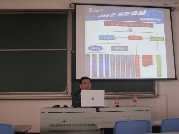梁教授简略地向大家介绍集团科技部门的组成与相应的职责;随后,他围绕紫金与科技的主题,向大家重点介绍了集团重视科技创新所采取的主要措施和激励机制,这些都极大地激发了科研人员的创新潜力和创造热情,成为集团的高速、持续发展的原动力。梁老师向大家详细阐述了集团科技工作的规划目标:将在未来10年内将紫金打造成高技术效益型特大国际矿业集团。