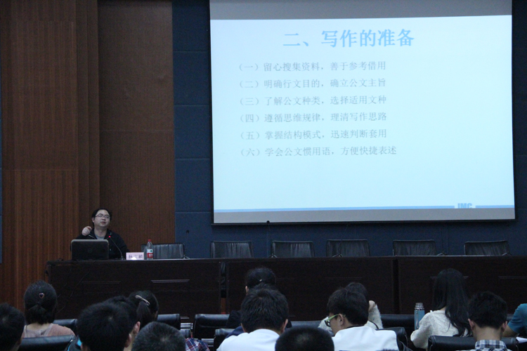 结合学院培养高素质学生干部的要求,为加强广大学生干部的公文写作能力,4月11日晚7时,紫金矿业学院第四届干部培训之公文写作技巧于学院三楼报告厅举行。此次培训主讲人为团委林文麟老师,院代理团委书记李金土出席活动,成人论坛 团委学生会级班级部分学生干部参与了此次培训。 在将近两小时的培训中,林文麟老师从写作意义、准备、结构、要素、文本、注意事项六方面深入细致的为同学们展开叙述,学生干部认真听讲,记录笔记。在讲座中,林老师还为学生干部们展示了一些不规范的作品,并指出其不足,及改进方法,用具体的事例引导在座学生干部理解写作规范和要求。 本次日常写作技巧培训作为干部培训的重要内容,讲述了日常写作的技巧、种类及方法。极大的促进了学生干部对写作的理解,并进一步提升了学生干部的理论知识和工作能力,推进了学生干部队伍综合素质的提高。(曾丁伟 供稿;罗瑞、曾丁伟 摄影)